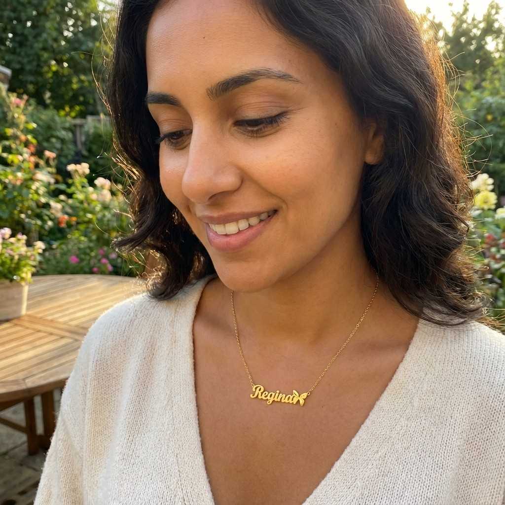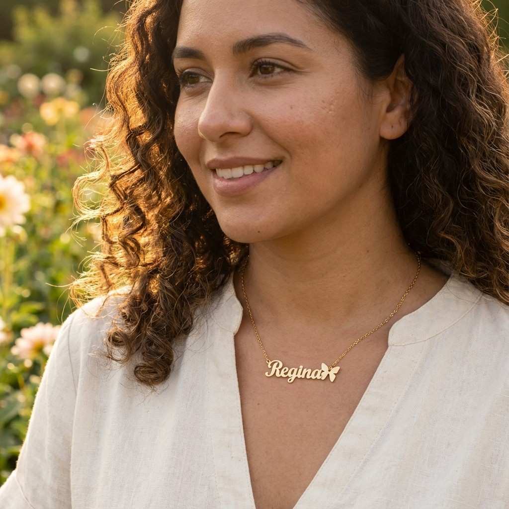 • Personalized Design: Features your custom name in elegant script, beautifully accented with a delicate butterfly motif.