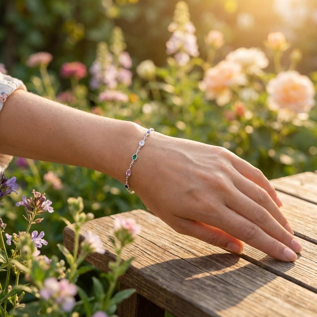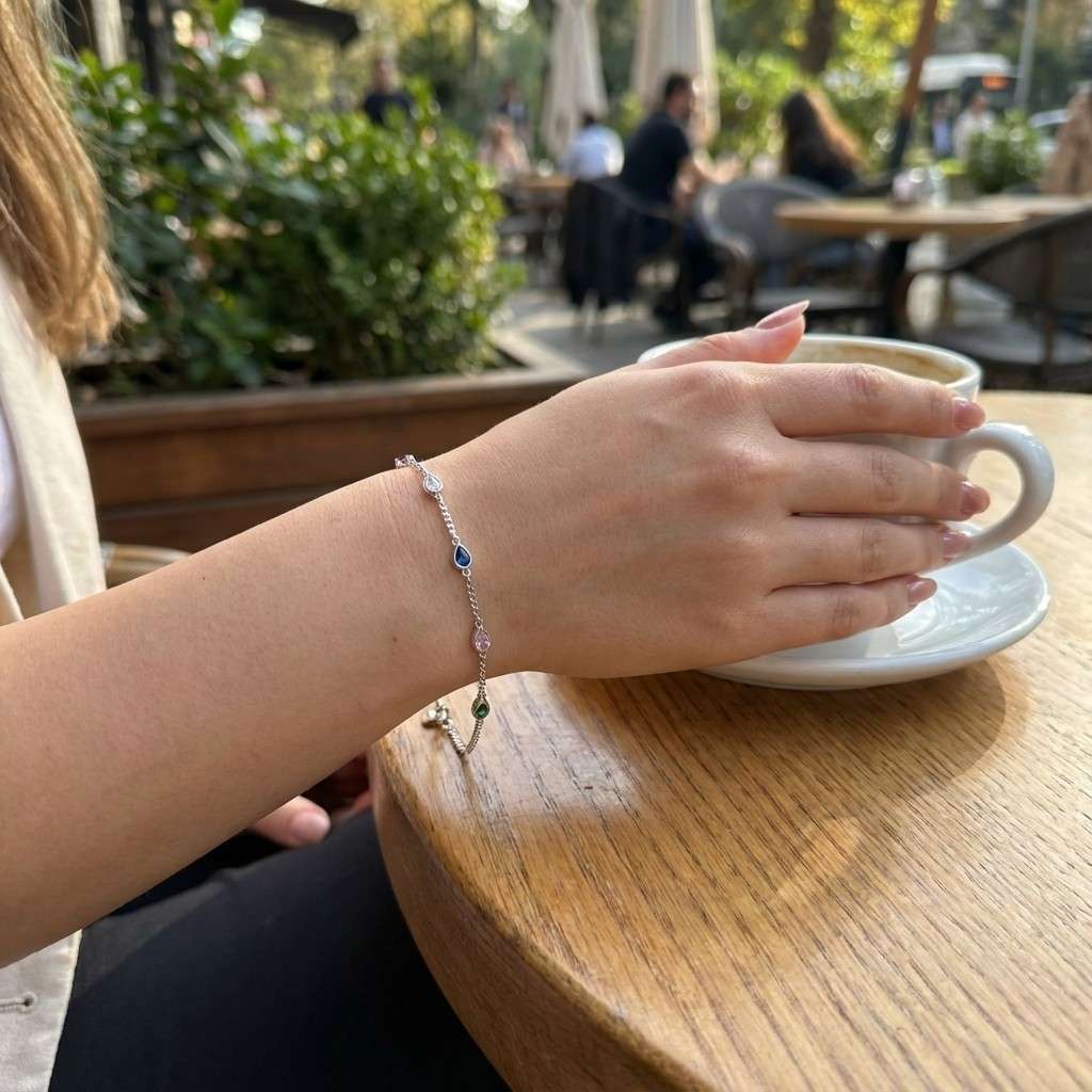 925 Sterling Silver Multicolor Teardrop Rainbow Gemstone Bracelet for Women – Adjustable Chain