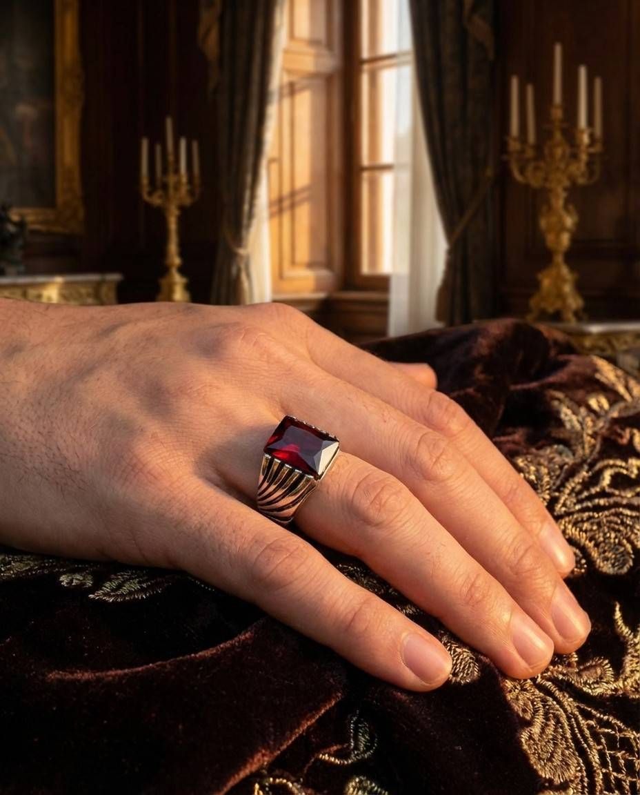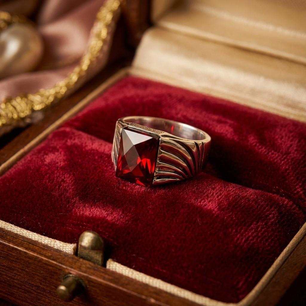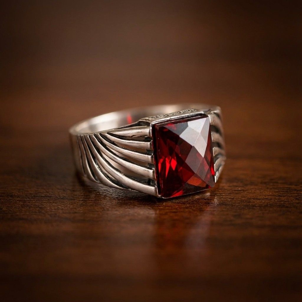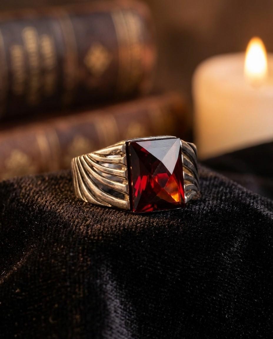 Be the first to review “Premium 925 Sterling Silver Men’s Ring with Square Red Garnet Gemstone – Luxury Statement Band”
